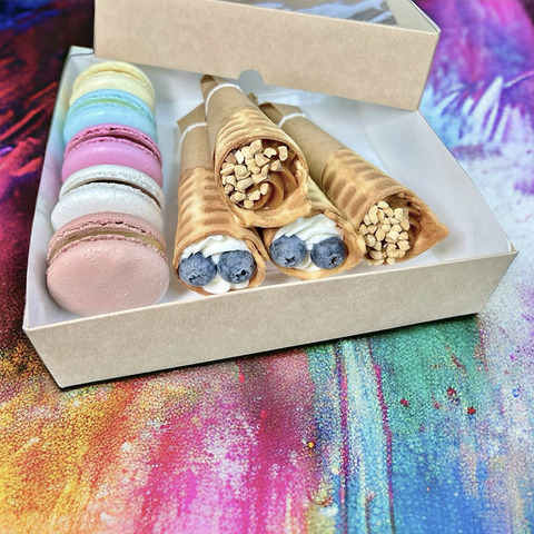 Ассорти 5 шт macarons и ассорти 4 шт сладкая трубочка в белой коробке