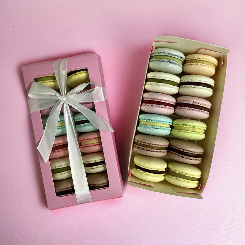 Ассорти 12 шт macarons в розовой коробке с лентой